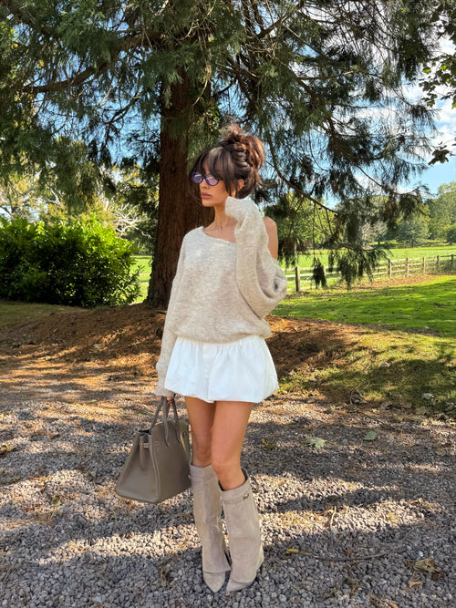 LUCIE Button Up Detail Long Sleeved Jumper In Oat -